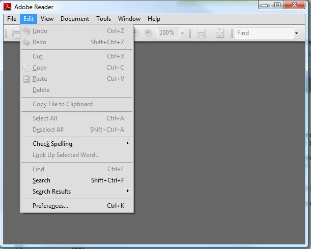 1. Open your Adobe Reader and select the Preferences Item from the Edit menu